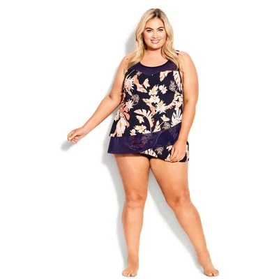 Soak up the glamour and water this swimsuit season in the blue foliage Mesh Print Tankini Top. With its mesh trim yoke, asymmetrical tiered design and an inbuilt power mesh shelf bra, this playful tankini is ready for all your beach day escapades!