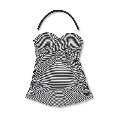 - Twist-front bandeau tankini top in black-and-white stripes print