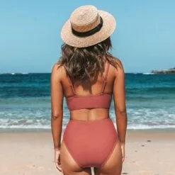 Women’s Ribbed Bikini Swimsuit Strappy Self Tied Low Waisted Bathing Suit -Cupshe