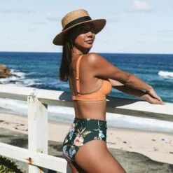 Women’s Orange Ruffle Bikini with Floral Bottom – Cupshe