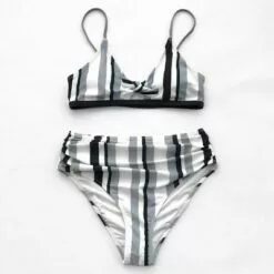 Women’s Stripe Bowknot Shirred Bikini Swimsuit Set-Cupshe