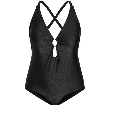 If there’s one thing we know for sure, it’s that a classic black swimsuit will never go out of trend, and this stylish one piece has total beach babe potential. Its standout features include glossy gold rings on the front and back, as well as a plunging neckline and full bottom coverage.CCX is a fun and flirty plus size brand with a youthful twist, specializing in the perfect fit for sizes 12 – 24