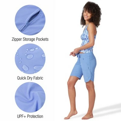 Need to grab a drink while at the beach or run a quick errand after lounging at the pool? Our all-time fan favorite Bermuda Short makes for the perfect cover-up or full coverage swim bottom. With revamped styling, these shorts will have you ready for any warm-weather excursion. Ultra-lightweight and breathable fabric dries quickly, making it perfect for the transition from beach to street. The updated petal hem keeps the fit flattering while maintaining coverage, with zipper close pockets for safe storage. Youll want to wear these shorts all summer long!