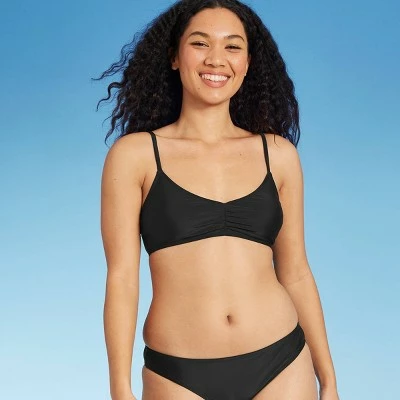 - Solid-color bikini top is easy to pair with an array of bottoms