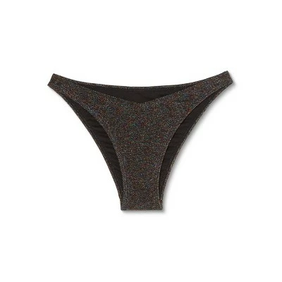 Let your personality shine through with the Metallic Extra Cheeky V Bikini Bottom from Xhilaration™. The extra cheeky silhouette and textured metallic finish provide a playful vibe, and this low-rise bikini bottom makes the perfect pick for everything from lounging at the pool to splashing in the surf. A V-shaped waistline and high leg update the otherwise straightforward design, while opaque fabric and elastic at the leg openings promise confident coverage through any activity. Pair it with a matching top for a cohesive beachside look, or put your own spin on things with a bikini top in a coordinating solid shade of your choice.
