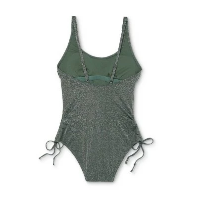Add this Metallic Side-Cinch One-Piece Swimsuit from Xhilaration™ to your swimwear collection for those days when you want to get noticed at the pool or beach. The high-leg swimsuit is styled with cinched sides for a figure-flattering silhouette, and the stretchy lightweight fabric and removable cups add comfort. This metallic-hued suit adds beautiful shine every time, and can easily be paired with a swim cover-up or skirt for glamorous poolside lounging.