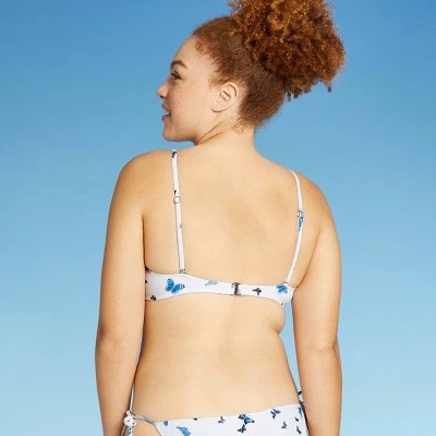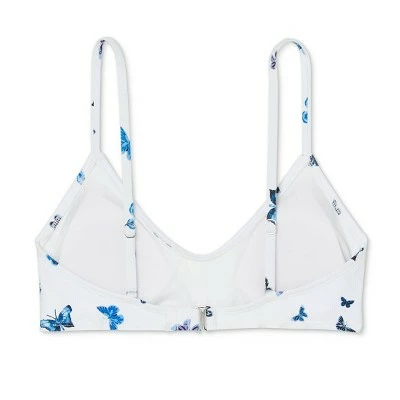 The Ribbed Bralette Bikini Top from Xhilaration™ is a must-have for your next vacation. This rib-textured bralette bikini top is adorned with an allover print of butterflies in blue and purple shades fluttering against a white background for a lively look. The removable cups make it easy to customize your coverage, while the adjustable shoulder straps and hook-and-loop fastening at the back provide a secure fit. The printed swim top is made from a soft and stretchy fabric that offers you flexible movement whether you are swimming, lounging along the shore, and more. Wear it with matching bottoms and your fave beach accessories to finish the look.