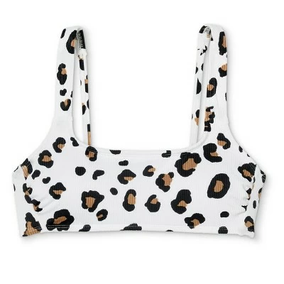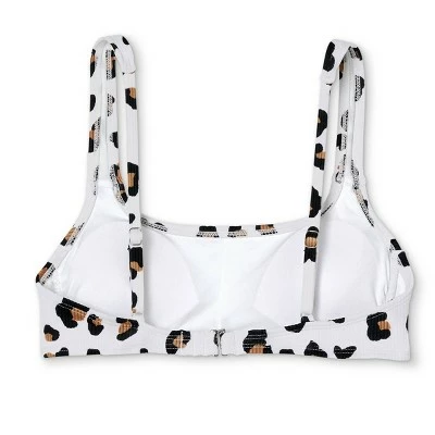 Add some feline flair to your poolside style with the Ribbed Bralette Bikini Top from Xhilaration™. This rib-textured bralette bikini top is adorned with an allover animal-spot print in black and brown hues against a white background for a fun, fierce look. The soft, sewn-in cups give you a supportive and flattering silhouette you’ll love, while the adjustable shoulder straps and hook-and-loop fastening at the back provide a secure fit. The printed swim top is made from a soft and stretchy fabric that offers you flexible movement whether you are swimming, lounging along the shore, and more. Wear it with matching bottoms and your fave beach accessories to finish the look.