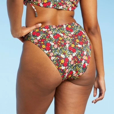 - Floral ribbed bikini bottom with a mid-rise fit