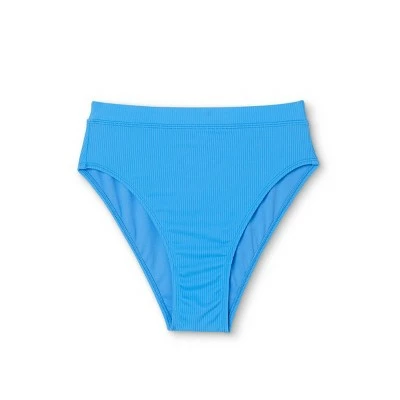 - Ribbed, high-waisted bikini bottoms add fun, laid-back style to your swim look