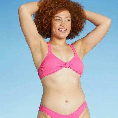 Bring a cute and bold look to your swimwear wardrobe with the Ribbed Knot-Front Bralette Bikini Top from Xhilaration™. This charming bikini top comes with a ribbed fabric and front-twist design that makes for a stunning and adorable look, perfect for days by the pool, lake or beach! Plus, the adjustable straps mean you can change the fit for all-day comfort. The removable cups provide the option to wear the top with or without cups, depending on what’s most comfortable for you. This top is available in extended sizes – Women’s and Women’s Plus. The extended sizes feature added ribcage band for increased bust support and sewn in cups.