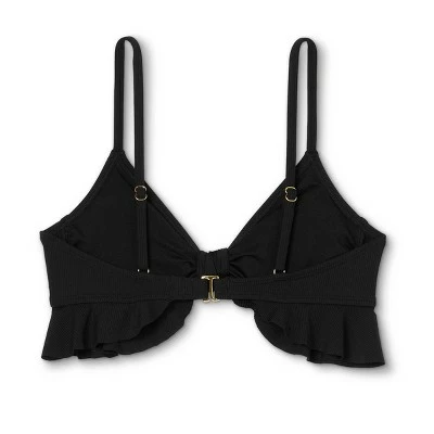 Soak up the summer sun in the Ribbed Ruffle Tie-Front Bralette Bikini Top from Xhilaration™. This bralette bikini top is adorned with a textured pattern of rising ribs in a solid hue and features a sweetheart neckline with a bow tie-front detail and ruffle frills below the bustline for a sweet look. The removable cups let you tailor your look to meet your personal preferences, while the adjustable shoulder straps and double swan hook closures at the back provide a secure fit. The ribbed swim top is made from a soft and stretchy fabric that offers you flexible movement whether you are swimming or lounging along the shore and more. Wear it with matching bottoms and your fave beach accessories to finish the look.