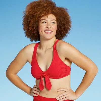 - Ribbed tie front triangle bikini top makes for a cute and playful look