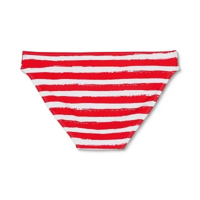 Get in touch with your patriotic side as you enjoy sunny outings with this Scarf Tab Bikini Bottom from Xhilaration™. This pull-on bikini bottom features a low-rise hipster silhouette and side tabs for extra visual interest, while red and white stripes add patriotic flair to your look. They are designed with soft, stretchy fabric that ensures comfortable movement, while a full lining offers coverage for confident wear in and out of the water. Pair this bikini bottom with a matching bikini top for a coordinated look, or wear patterned swim tops for an endless array of styling options.