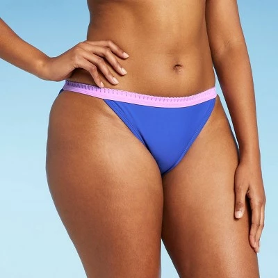 The Stitched-Trim Cheeky Bikini Bottom from Xhilaration™ is a pool party must-have. This pull-on swim bottom is crafted from a soft fabric with added spandex to keep you nice and comfortable throughout your sunny adventures, and is finished in a stunning cobalt blue hue with a lavender waist accented with stitched trimming. Featuring a cheeky cut back, this low-rise bikini bottom also has a full lining to offer you confident coverage you can always count on. Pair with a matching top and your fave sunnies for the ultimate beach style.