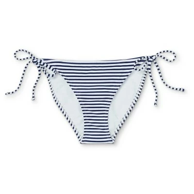 Update your swimwear pieces with this Hipster Bikini Bottom from Xhilaration™. This cheeky bikini bottom printed with navy blue and white horizontal stripes brings a nautical vibe to your swimwear. Featuring an on-trend low-rise cut with a medium coverage design, the side string ties make a great accent and also help you achieve the perfect fit. The stretchy fabric ensures comfortable movement, while the full lining offers confident wear. Pair them with the available matching bikini top, or with other bikini tops for different styling options.
