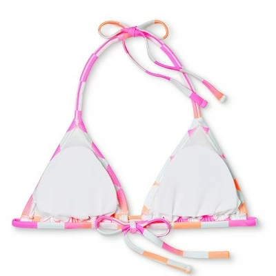 Update your swimwear with the fashion-forward look of this String Bikini Top from Xhilaration™. A white backdrop is printed with an allover checkered print in a gorgeous pink-and-orange ombre style you’ll love showing off in the sun. It has ties around the back and neck, letting you adjust this top to be as snug as you need to feel comfortable. Removable pads and an opaque fabric construction will have you basking in the sun or strolling along the shore feeling your most confident.