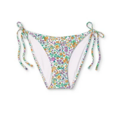 Bring cool and playful style to your swimwear this summer with the Juniors’ String Hipster Bikini Bottom by Xhilaration™. This cute swimsuit bottom features a floral pattern with orange, white, purple and green hues—perfectly vibrant for bright summer days! The hipster design offers comfortable coverage and playful style, plus the elastic at the leg opening makes for extra stretch for easy movement.