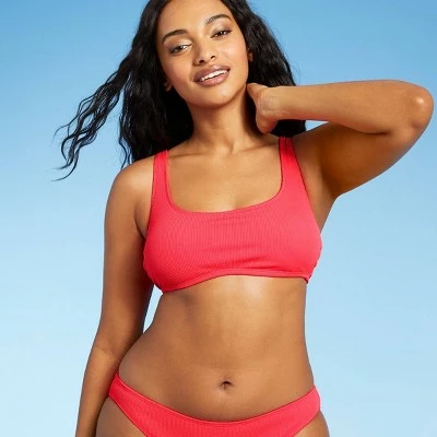 This Textured Ring Back Bralette Bikini Top in Neon Pink from Xhilaration™ is the perfect addition to your swimwear collection. It gets a sporty look from a wide neckline and its pullover style. The ribbed fabric gives this bralette a touch of textured flair, while its opaque construction and removable cups let you stroll along the shore or tan in the sun feeling your most confident. Pair it with matching bottoms or another neutral, solid color for a bold, confident look.