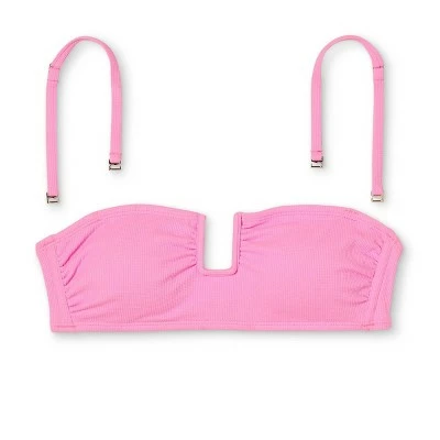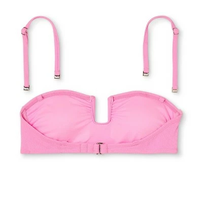 Spend your next beach day or pool party in trendy style with this Textured U-Wire Bandeau Bikini Top from Xhilaration™. You and your friends will fall in love with the textured graph checks in a bright pink color. This bandeau-style bikini top has lightly ruched folds in the middle and a U-shaped cutout for a feminine, fashion-forward design. It comes with detachable over-the-shoulder straps to offer you the comfort of an extra secure fit, and an opaque fabric construction lets you rock this cute top in the full confidence you need for a fun day in the sun. Pair it with the matching bottoms for a cool, coordinated look.