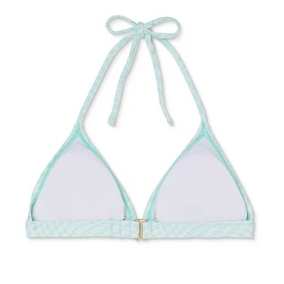 Get ready for fun in the sun with the Triangle Bikini Top from Xhilaration™. This cute bikini top comes in a triangle cut and features a pretty plaid pattern in mint green and white shades for a chic look. It fastens with halter ties and a sleek back strap with a hook-and-loop closure to give you a secure and customized fit. The checkered bikini top is made from a soft and stretchy fabric that offers you flexible movement whether you are swimming or lounging along the shore and more. Wear it with matching bottoms and your fave beach accessories to finish the look.