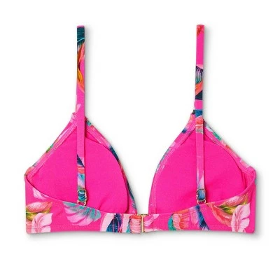 Whether you’re heading to the beach with friends or hanging out by the pool, this Trilette Bikini Top from Xhilaration™ is the perfect addition to your swimwear wardrobe! This cute bikini top features an intricate floral design on a magenta background for a look that’s as bold and fun as you are! The removable cups allow you to wear this top in the way that’s most comfortable for you, while the back hook helps keep the top in place even while you’re running or swimming. Pair this top with the available matching bottom or other bottoms for a variety of swimwear options.