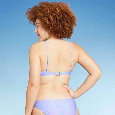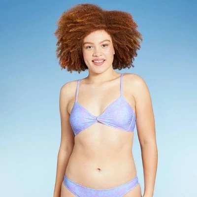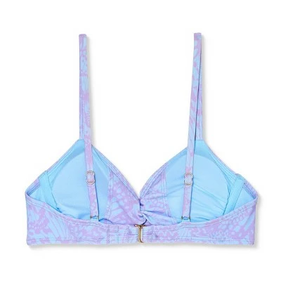 Add a “twist” to your beach-ready routine wearing this Twist-Front Bralette Bikini Top from Xhilaration™. In a light aqua blue color, this bralette bikini top features a beautiful pink butterfly print for a sweet look. The cool twisted front and cutout brings an extra dose of style, while crisscross straps and a back tie elevate the look. Made with soft fabric with added spandex for stretchy comfort both in and out of the water, this printed bikini top also allows easy mixing and matching with both printed and solid-color bikini bottoms.