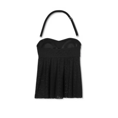 You’ll love how easy it easy to enjoy any day by the water in the comfy-chic style of this Crochet Bandeau Flyaway Tankini Top from Isabel Maternity by Ingrid & Isabel™. Made with a touch of spandex to help accommodate your growing bump, this maternity tankini top features a solid black color with an allover crochet pattern for a sweet textured look. The twist accent at the bandeau bust adds stylish flair, while the tie accent at the back completes the charming design. With sewn-in cups for added comfort and coverage, this black maternity tankini top is easy to coordinate with a range of bottoms for chic pool or beach style.