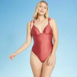 Women’s Tall/Long Torso Petal Cup Tie Strap One Piece Swimsuit – Shade & Shoreâ„¢ Mahogany