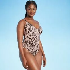 Women’s Tall/Long Torso Plunge Tie-Front Wrap One Piece Swimsuit – Shade & Shoreâ„¢ Palm