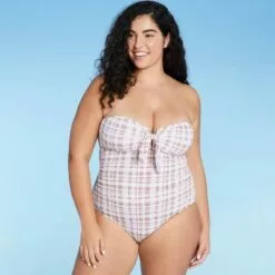Women’s Textured Pique Tie-Front High Coverage One Piece Swimsuit – Kona Sol™ Multi Naturals