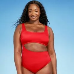 Women’s Textured Ribbed Side Cut Out Medium Coverage One Piece Swimsuit – Kona Sol™ Lively Red