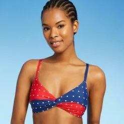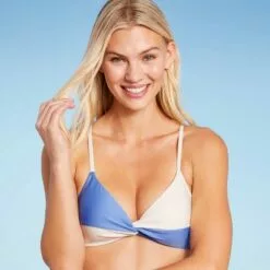Women’s Twist-Front Bralette Bikini Top – Shade & Shoreâ„¢ Periwinkle & Cream Colorblock