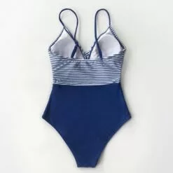 Women’s Twist Front One Piece Swimsuit Blue Striped Bathing Suits – Cupshe