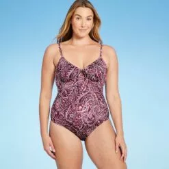 Women’s Tunneled Tie-Front Underwire Medium Coverage One Piece Swimsuit – Kona Solâ„¢ Burgundy