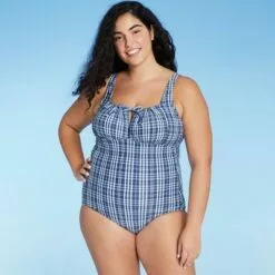 Women’s Tunnel High Coverage One Piece Swimsuit – Kona Solâ„¢ Blue Check