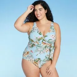 Women’s Wrap-Front High Coverage One Piece Swimsuit – Kona Solâ„¢ Tropical Print