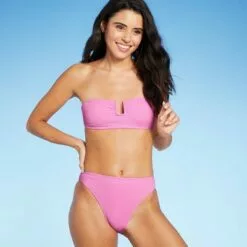 Juniors’ Textured Cheeky Mid-Rise High Leg Bikini Bottom – Xhilaration™ Pink