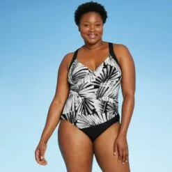 Women’s Draped Front One Piece Swimsuit – Aqua GreenĀ® Black & White