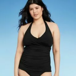 Women’s Halter One Piece Swimsuit Plunge Neck Ruched Swimwear Bathing Suit -Cupshe
