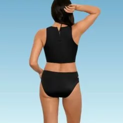 Women’s Slimming Control Ruffle Shoulder Bikini Top – Beach Betty by Miracle Brands Black