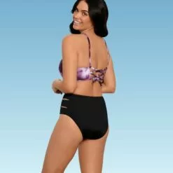Women’s Slimming Control Cut Out Tie Back One Piece Swimsuit – Beach Betty by Miracle Brands Purple