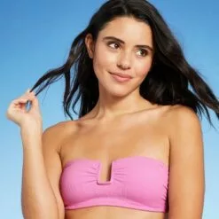 Juniors’ Textured U-Wire Bandeau Bikini Top – Xhilaration™ Pink