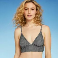 Women’s Textured Longline Triangle Bikini Top – Shade & Shoreâ„¢ Black/White Stripe