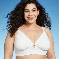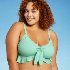 Juniors’ Plus Size Ribbed Ruffle Tie-Front Bralette Bikini Top – Xhilaration™ Mint Green