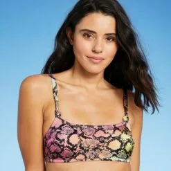 Juniors’ Ribbed High Neck Bikini Top – Xhilaration™ Mango Orange