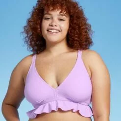 Juniors’ Plus Size Ribbed Triangle Bikini Top – Xhilaration™ Brown