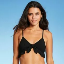 Juniors’ Cinch-Front Bralette Bikini Top – Xhilaration™ Black