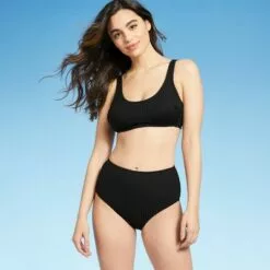 Women’s Ribbed Textured Scoop Bikini Top – Kona Sol™ Black