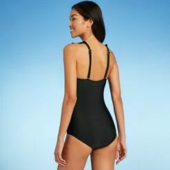 Women’s Ruffle Over the Shoulder High Coverage One Piece Swimsuit – Kona Sol™ Black
